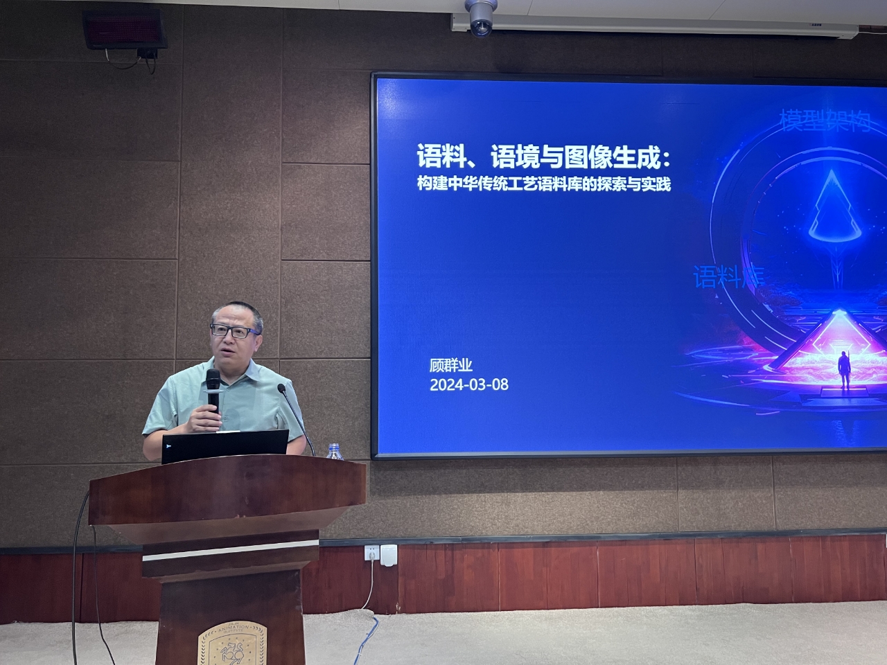 顾群业教授以“语料、语境与图像生成:构建中华传统工艺语料库的探索与实践”为题,从人工智能语料库建设背景出发,系统阐释了人工智能“数据、算法、算力”三要素的内在逻辑,结合山东工艺美术学院学科专业布局与顶层设计,分享了专业建设、课程建设、教材开发中结合人工智能的创新成果。通过详实的案例分析和前瞻性的趋势研判,为与会者勾勒出人工智能赋能专业、教材与课程建设的实施路径。