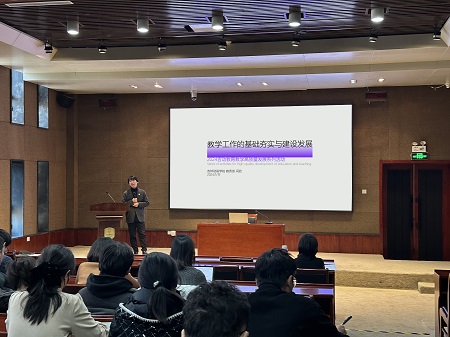 闫欣部长主要围绕专业建设、课程建设、教学改革三方面展开。专业建设要洞察专业面向产业、行业的发展趋势,研判专业发展方向,掌握市场人才需求,结合国家、地方需要和学校特色,凝练专业特色,保持优势,与时俱进。课程作为人才培养的最小单元,对于落实人才培养方案和达成人才培养目标具有至关重要的作用。课程建设是学科、专业建设的重中之重,要明确课程建设切实落实“两性一度”,思政元素润物无声全面融入,加快数字化、信息化转型的大目标和大方向。要围绕产教融合、专创融合、通专融合、思专融合、艺科融合,开展培养模式、教学模式、教学内容、数字化转型等方面开展教学改革。