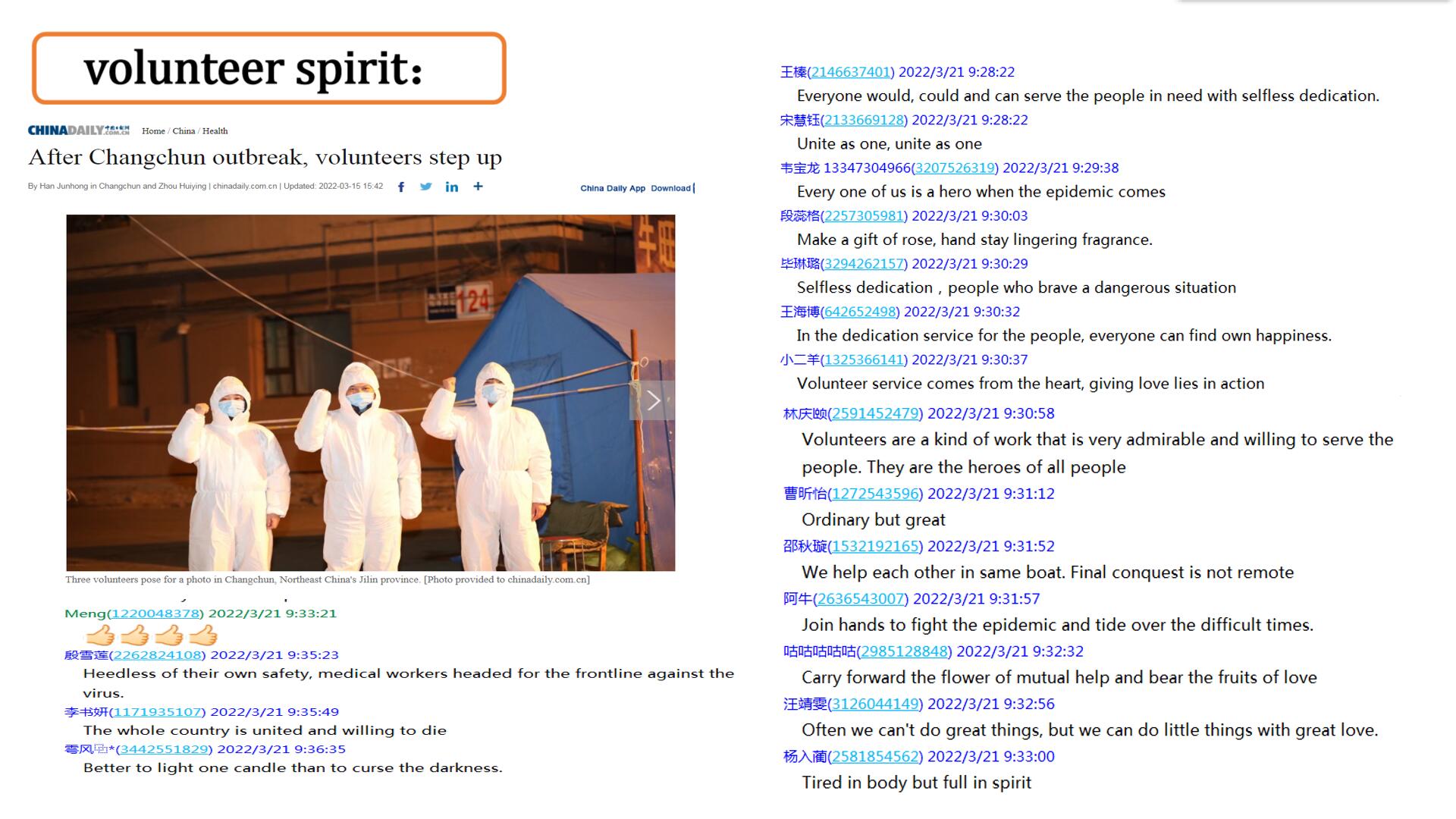 讲解Unit 2单词volunteer 与sacrifice,结合China Daily对长春疫情防控期间七万多名志愿者挺身而出参加战“疫”的新闻报道,所授班级的学生们纷纷用英文表达对志愿者辛苦工作的支持与感谢,培养学生的感恩与奉献意识。