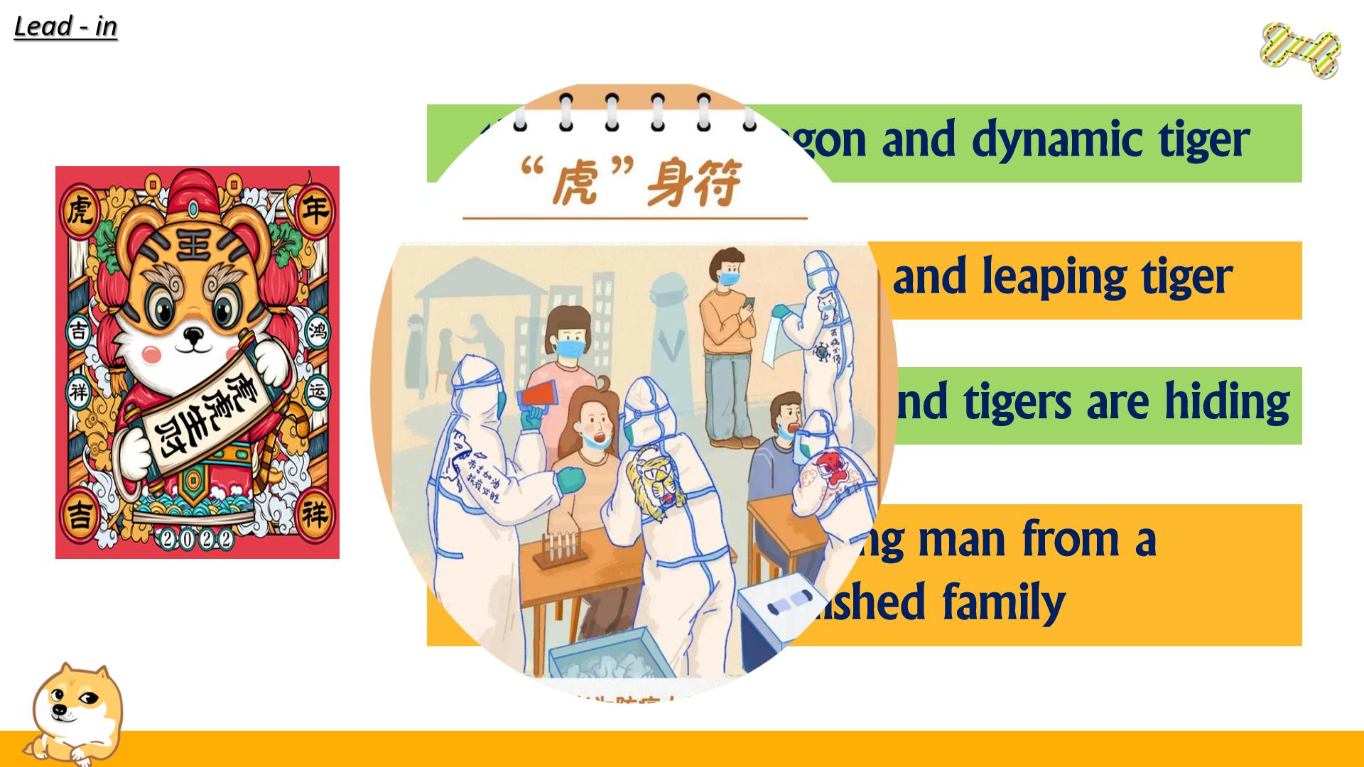 以单元主题动物在不同文化中的不同寓意为依托,着重对比中英习语中对老虎形象的不同体现,激发当代大学生对于敢于在疫情期间不顾个人安危冲在抗疫第一线的志愿者们身上体现出来的正义、担当、守护,心怀感激之情,将老虎体现的美好寓意和志愿者的优秀品格相结合。体现了学生对于志愿者的崇敬之心。另外以“虎身符”这样的谐音,期盼志愿者战“疫”之中,平平安安的美好心愿。